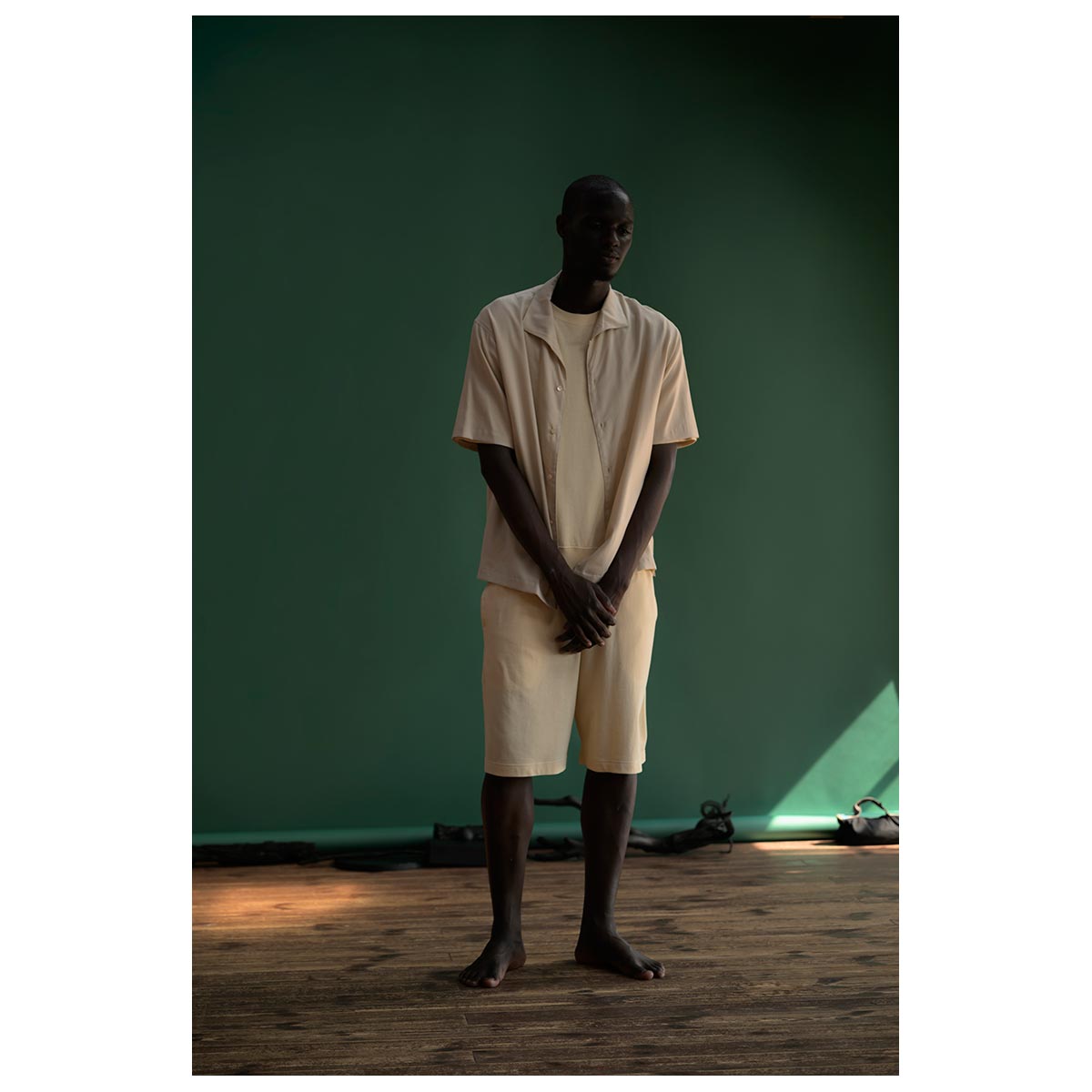継続的に展開していたスウェットパンツのデザインを落とし込んで仕上げたバギーショーツ。