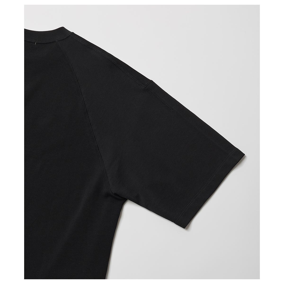 前後で違いのある変則的な袖付けが特徴的なTシャツ。