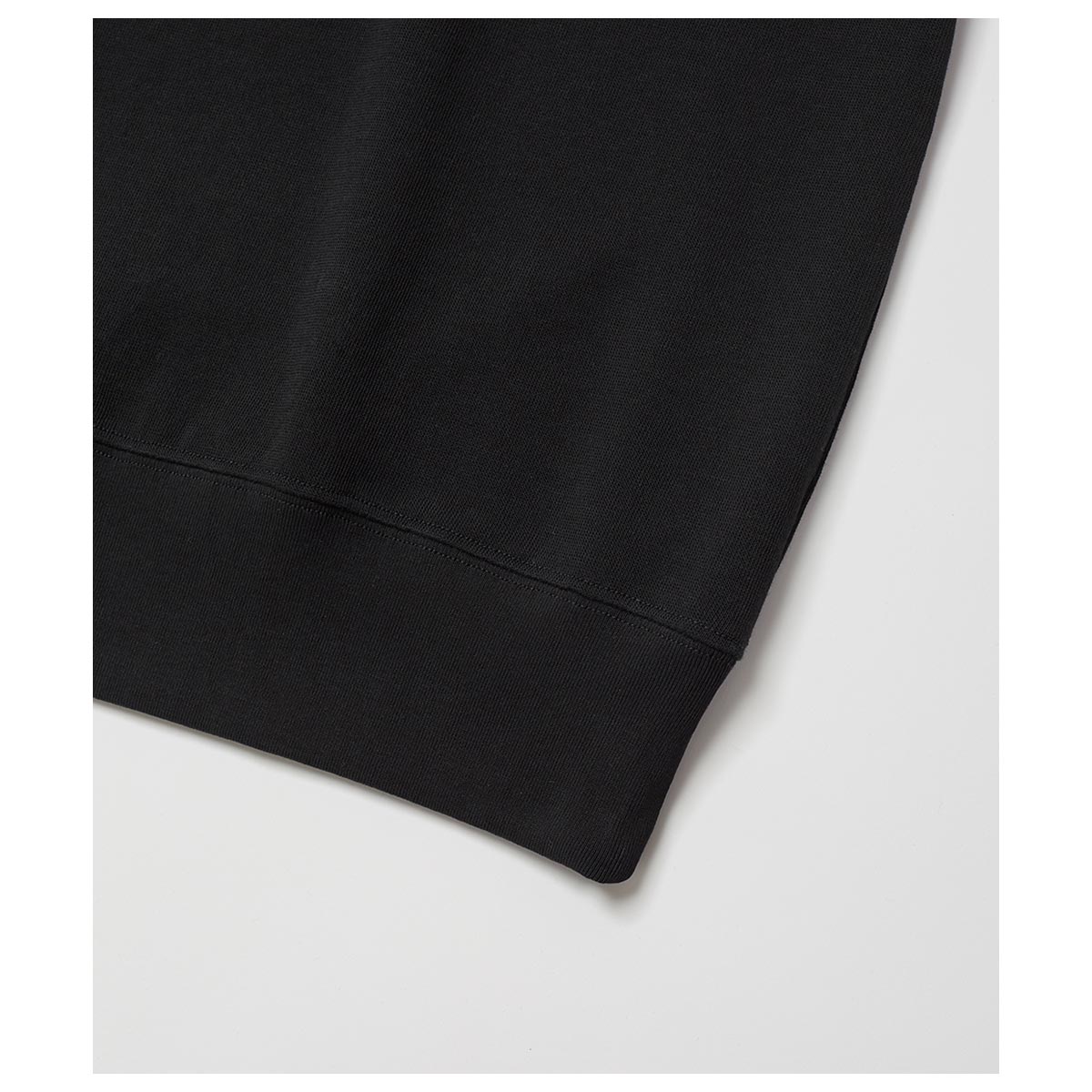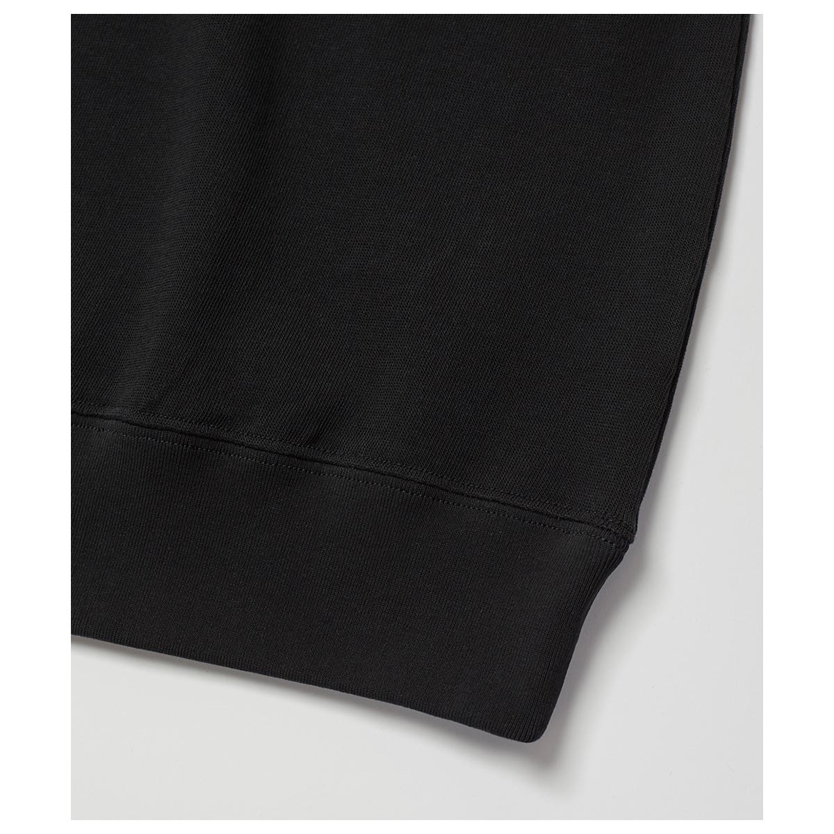 表⽷に特殊加⼯で⽑⽻⽴ちを抑えたスーピマ強撚糸、裏⽷にスビンコットンを使⽤したスーパーライト裏⽑。世界に1台しかない特殊な編み機を使⽤し、裏のループがフラットになるように編み上げることで、裏⽑とは思えない薄さとキックバック性に富んだソフトな風合いを実現しています。