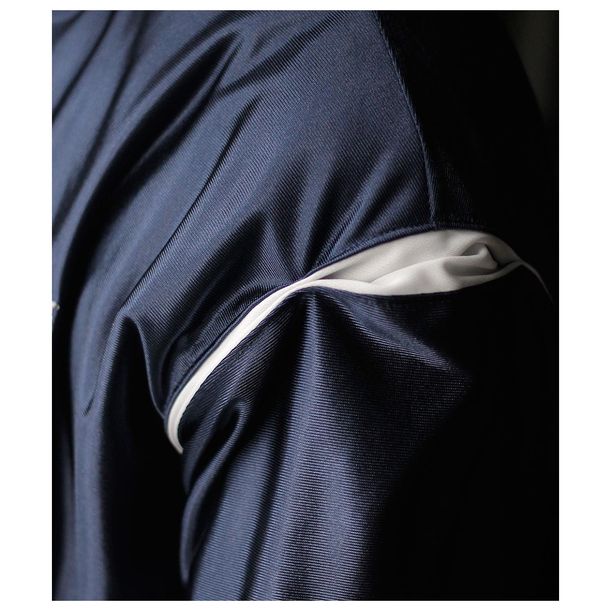 トリコット編みならではの柔らかさと、程よく身体に馴染む伸縮性に加え、ほんのりと上品な光沢を放つサテン調の素材感が特徴の一着。軽やかな着心地で、ストレスなく動ける快適さも魅力です。