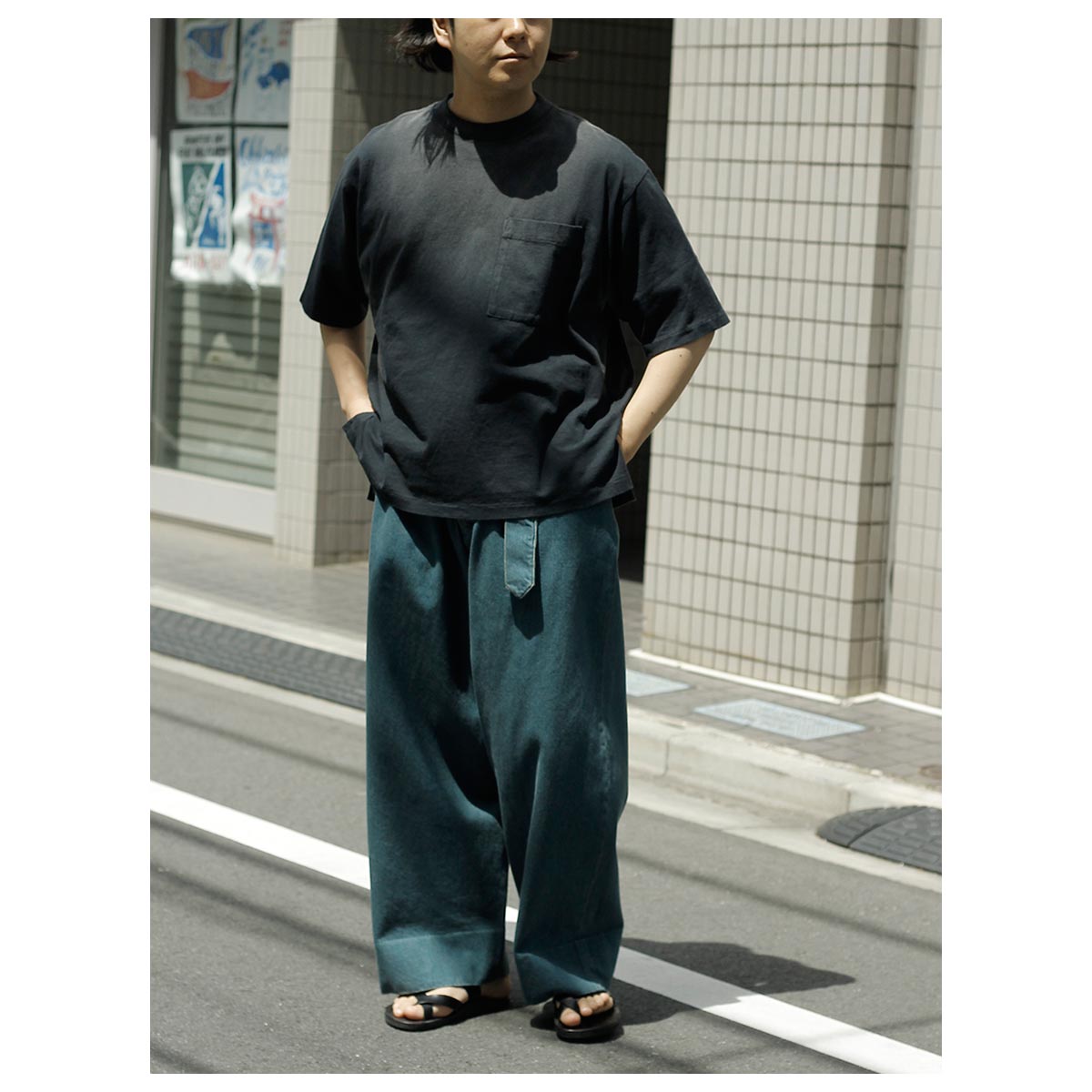 新品の状態でもどこかこなれた空気があって、そこからさらに自分の着方で育っていく。いわゆる“完成されすぎていない”良さがあって、着る人によって色の抜け方や雰囲気が変わっていくのも、この染めならではです。
